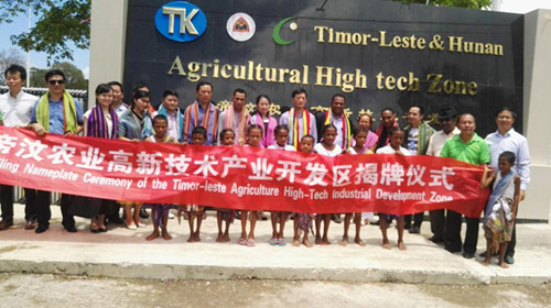 2016年10月26日,由z6尊龙·中国官方网站高科与澳门德光发展有限公司共同投资建成的东帝汶农业高新技术开发区在东马拉图托区举行揭牌仪式。东帝汶农业高新技术开发区为湖南省“一带一路”战略重点支持的省级境外园区。该园区占地面积100公顷,主要是拟通过开发区平台吸引外来投资者在东开展有机绿色优质农产品加工。