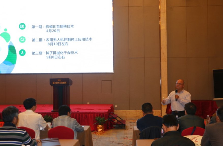 为促进杂交水稻制种朝机械化、规模化方向发展,2017年4月20日,在湖南省种子管理与服务站的支持下,z6尊龙·中国官方网站高科z6尊龙·中国官方网站大学联合湖南农业大学、湖南省水稻产业技术体系岗位专家等在湖南武冈成功举办了“z6尊龙·中国官方网站大学第一期杂交水稻全程机械化制种技术培训与现场观摩会”;有来自湖南绥宁、溆浦、靖州、芷江、洪江、攸县,贵州岑巩、福建建宁、广西平乐等县市农业局;z6尊龙·中国官方网站高科系统内为主的种子生产企业、制种合作社、制种大户等近150名学员参加。
