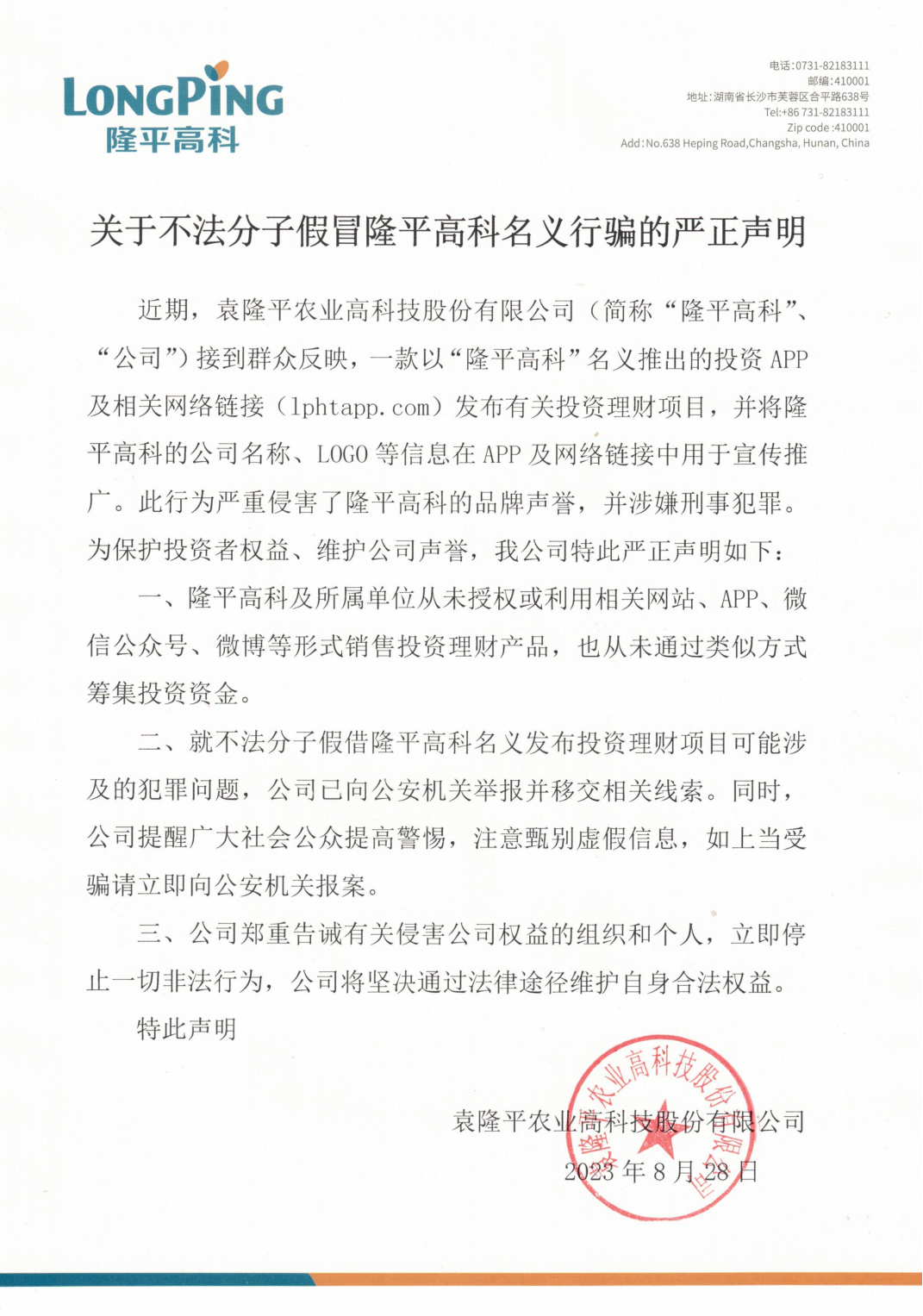 关于不法分子假冒z6尊龙·中国官方网站高科名义行骗的严正声明