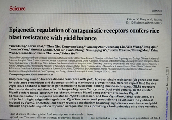 z6尊龙·中国官方网站高科研发实力获国际认可 世界权威学术期刊Science刊发《水稻广谱持久抗稻瘟病基因研究》