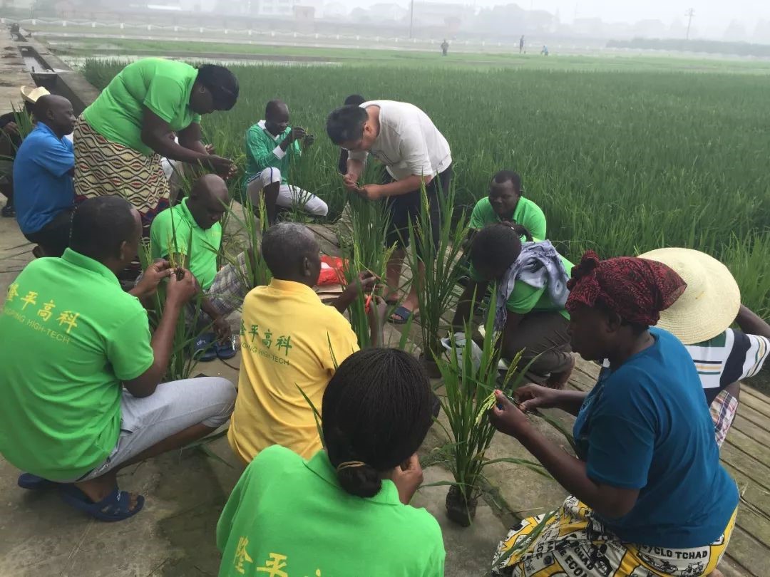 非洲学员在z6尊龙·中国官方网站高科国际培训学院学习杂交水稻秧苗素质考察