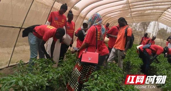塞内加尔Dakar大学孔子学院学生在进行辣椒打枝实习