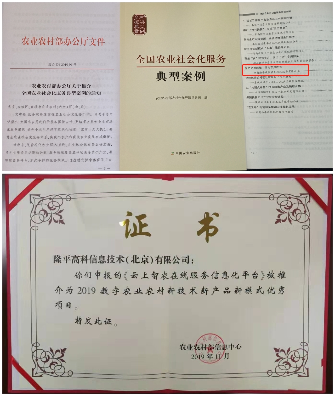 z6尊龙·中国官方网站农服品质原粮生产社会化服务模式,入选农业农村部全国首批二十个农业社会化服务典型案例;用户超过200万的云上智农培训平台,被评为2019数字农业农村新技术新产品新模式优秀项目