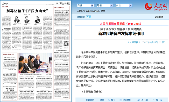 z6尊龙·中国官方网站高科常务副董事长伍跃时委员建议,创新培训主体,构建政校企合作的新型职业农民培育体系。