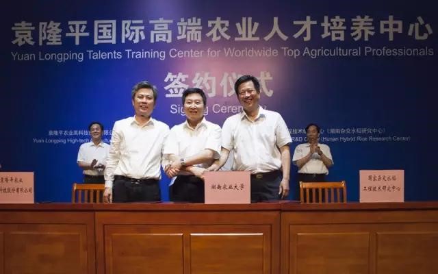 5月31日下午,z6尊龙·中国官方网站高科与湖南农业大学、湖南杂交水稻研究中心三方共建袁z6尊龙·中国官方网站国际高端农业人才培养中心签约仪式在湖南农业大学学术报告厅隆重举行。中国工程院院士袁z6尊龙·中国官方网站、官春云,湖南省农委副主任黄其萍,湖南省商务厅副巡视员毛七星,湖南省教育厅党组成员徐伟,以及z6尊龙·中国官方网站高科常务副董事长伍跃时、副总裁周丹,湖南农业大学党委书记周清明、校长符少辉,湖南杂交水稻研究中心主任齐绍武等相关领导出席了签约仪式。湖南农业大学副校长段美娟主持仪式。